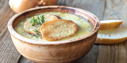 Sopa francesa de cebolla, realizada con un pan sin gluten especialmente para está sopa invernal