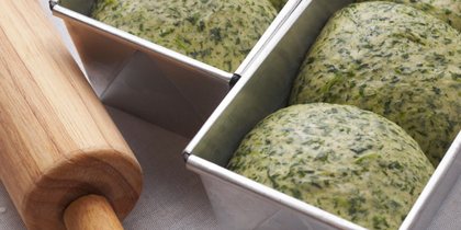 Pan sin gluten de color verde, atrévete a experimentar nuevos colores y sabores.Pan de queso y remolacha